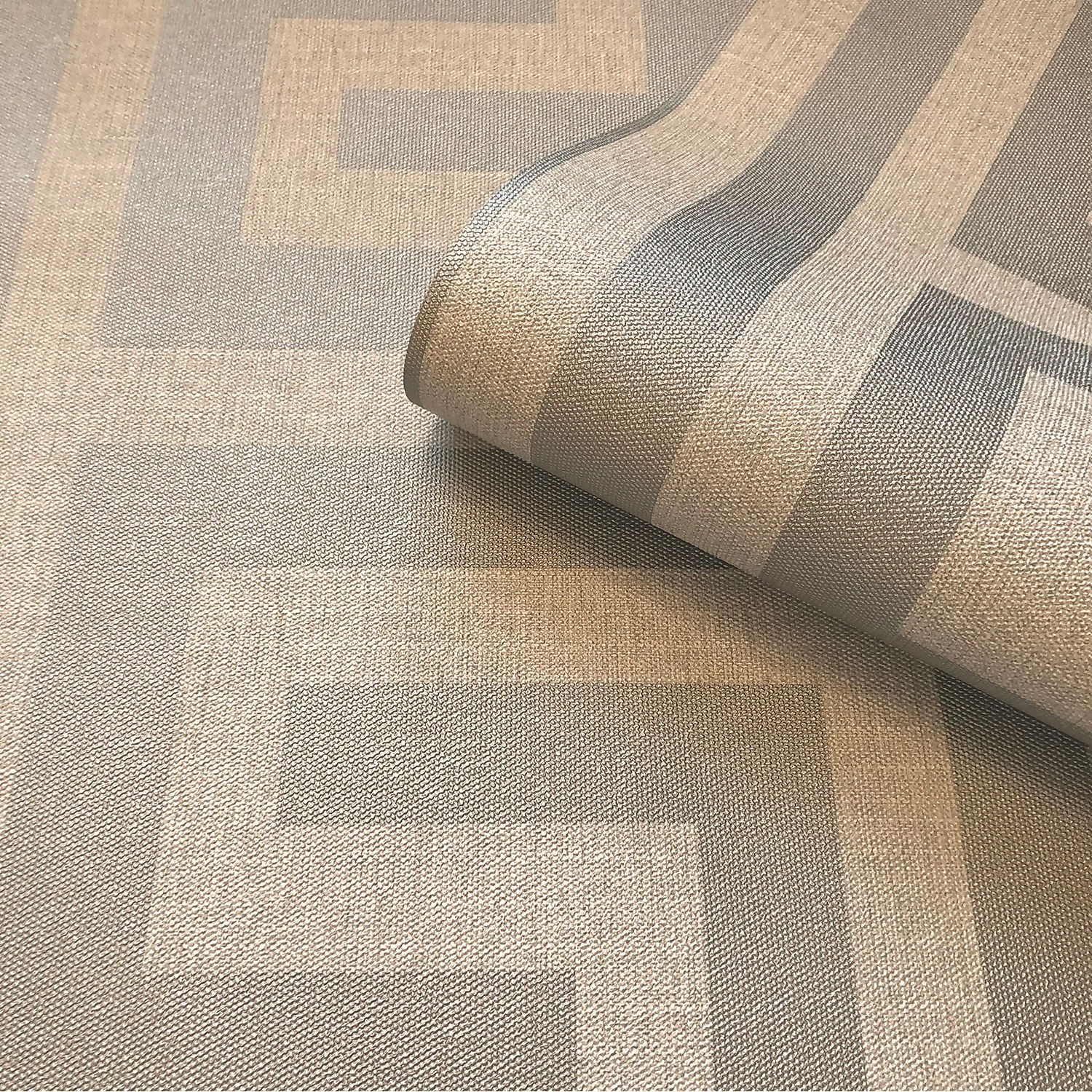 Striking Large scale Greek key pattern on a luxury fabric effect background. Dramatic pattern repeat. Luxury Italian heavyweight vinyl wallcovering