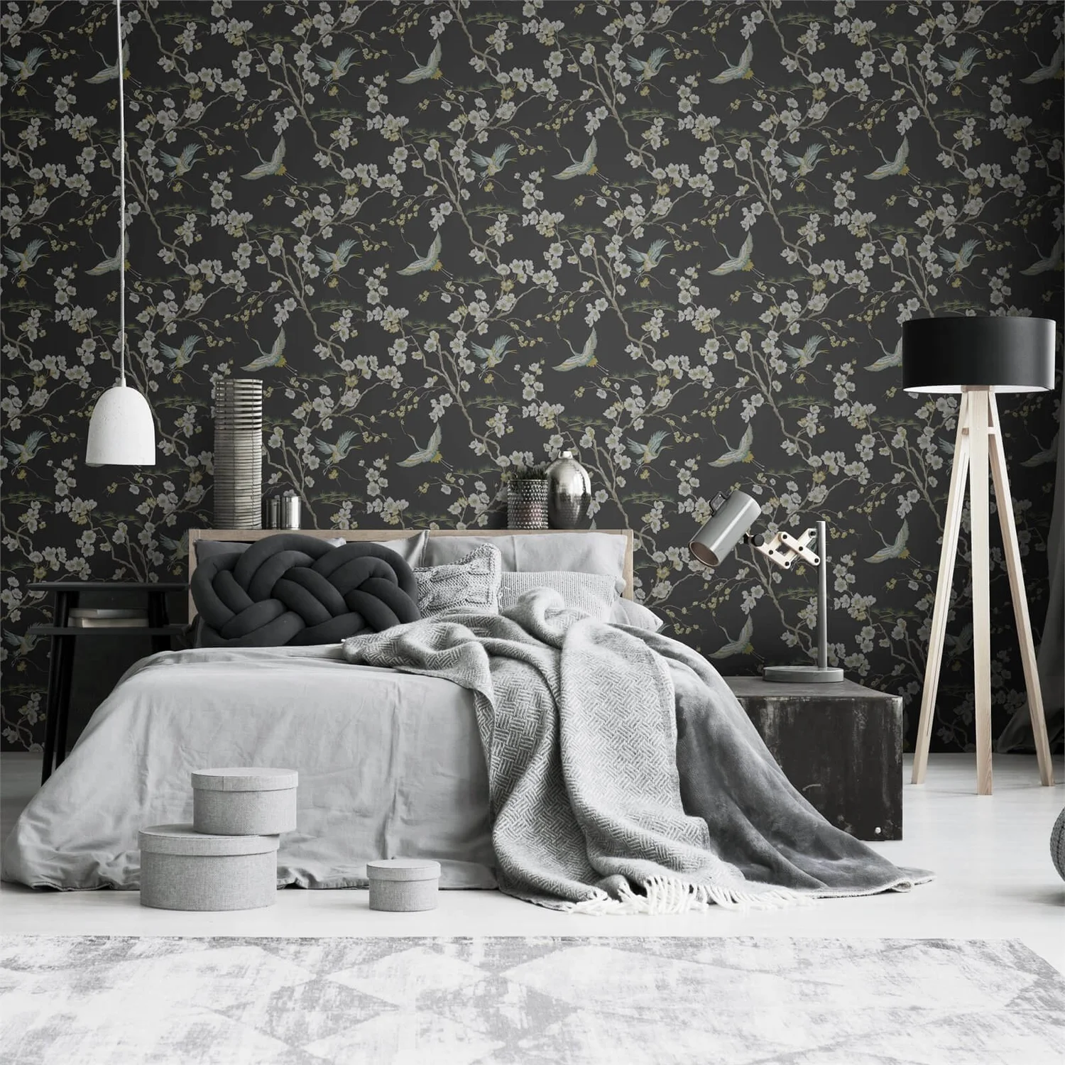 Surround yourself with a Japanese inspired wallpaper. It has a Zen-like calm about it, so it’s perfect for introducing to rooms like your bedroom or lounge where you want to relax and unwind. The bird is celebrated and revered in Japan as a symbol of longevity, love and luck, so it is an important addition to this wallpaper. The birds sit amongst a blossom trail pattern in tones of cream, ochre, teal and deep green with subtle metallic silver accents. The beautiful design is sure to add a touch of serenity to any room you choose to hang it.